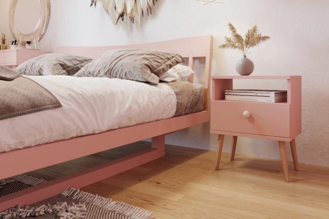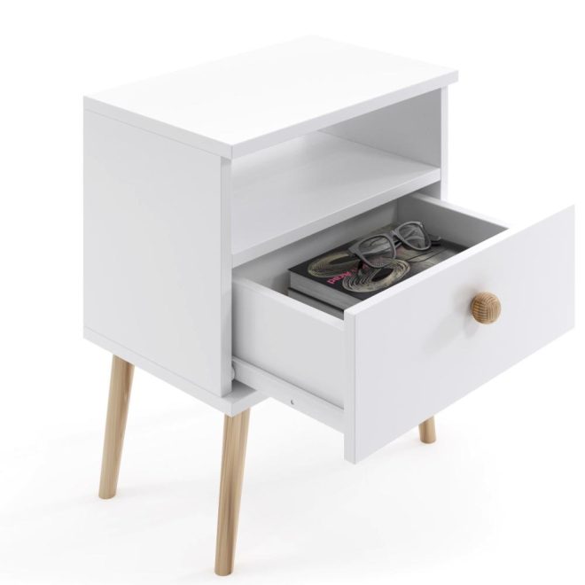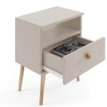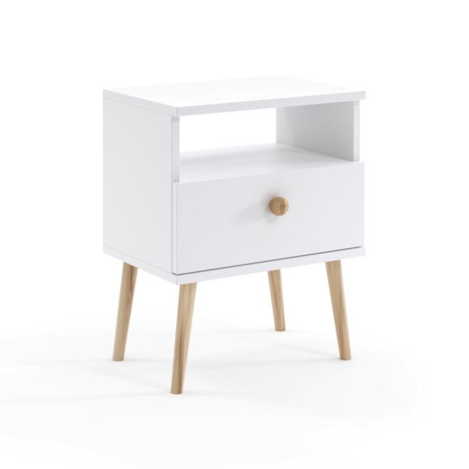 Stolik nocny BELLA BOHO z szufladą na wysokich drewnianych nogach